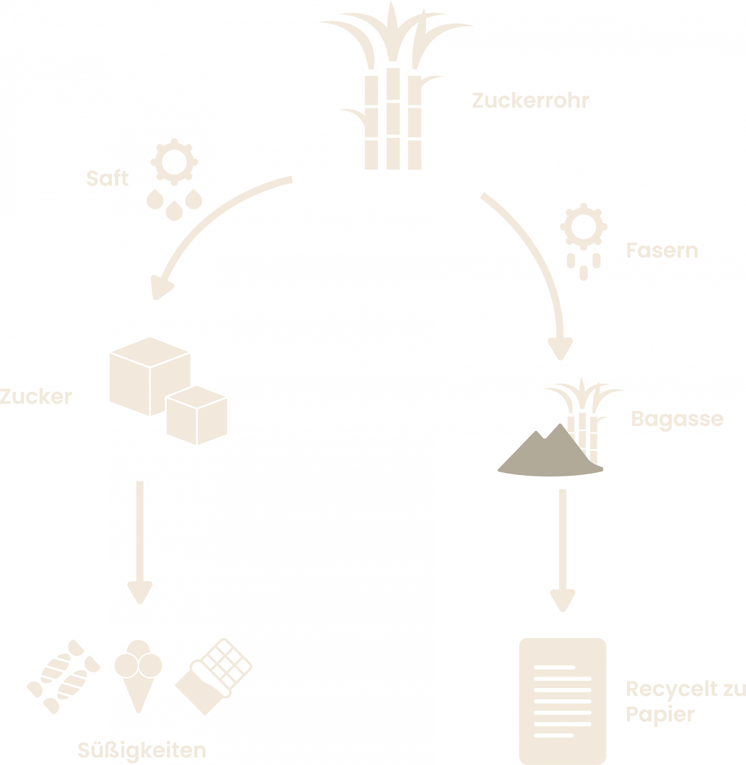 Wir glauben fest daran, dass wir durch die Nutzung von Bagasse für die Papierproduktion einen wichtigen Beitrag zur Kreislaufwirtschaft, nach dem Cradle2Cradle Prinzip leisten und gleichzeitig natürliche und hochwertige Produkte anbieten können.